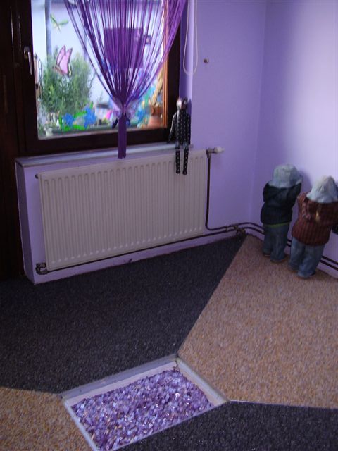 Weil die Umgebungsluft sich zwischen den Körnchen Ihres Zierkiesbodens einnistet, fühlt der Boden sich immer warm und behaglich an. Die Bodentemperatur in einem Raum mit z.B. 20°C ist durchschnittlich 14 bis 15°C warm – eine sehr angenehme Temperatur.